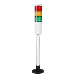PL4PF-3FF-RYG Светосигнальная колонна d=45 мм, монтаж на алюм. стойке с пласт. опорой (MAM-B070D), осн. корп. 89 мм (пластик), 3 модуля (LED) пост./мигающ. свечения: красный/жёлтый/зелёный, питание 110…220VAC, IP63