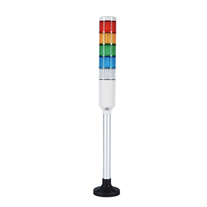 PL4PF-5FF-RYGBC Светосигнальная колонна d=45 мм, монтаж на алюм. стойке с пласт. опорой (MAM-B070D), осн. корп. 89 мм (пластик), 5 модулей (LED) пост./мигающ. свечения: красный/жёлтый/зелёный/синий/прозрачный, питание 110…220VAC, IP63