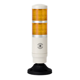 PMEGZ-201-YY Светодиодная сигнальная колонна диаметр 45мм. Свечение постоянное + мигающее + зуммер 80Дб, установка на пластиковое основание, 2 секции, питание 12VAC/DC, цвет: желтый
