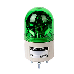 MLG-10-G Сигнальный маяк d=66×115мм, монтаж на шпильках 3×M4, модуль с лампой накаливания (BA15S) вращающегося свечения: зелёный, питание 110VAC, IP42