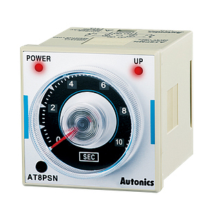 AT8PSN Аналоговый таймер от 0,05 до 10 сек. питание 200-240VAC; задержка по выкл. питания; запуск при выкл. питания, 8-конт. штекер; 2НО+2НЗ с задержкой