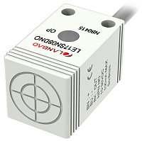 LE20SN08DNO Датчик индуктивный прямоугольный 20х20x38 мм, пластиковый корпус, чувствит. часть с торца, выход NPN НО, расст. сраб. Sn=8 мм, питание 10…30 VDC, 500 Гц, IP67, кабель 2 м