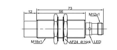LR18XCN20DPOY-E2 Индуктивный датчик, диаметр корпуса M18, незаподлицо, выход PNP НО, расст. сраб. Sn=20 мм, IP67, питание 10...30VDC, 150 Гц, разъём М12