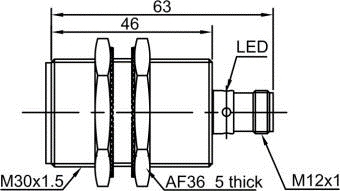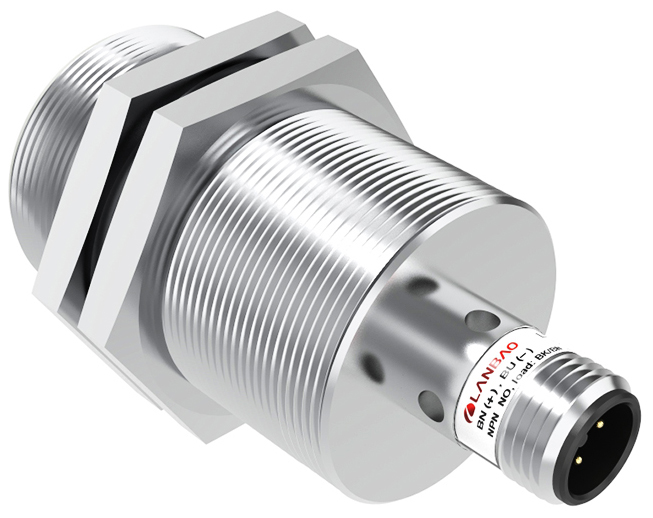 LR30XBF10DPO-E2 Индуктивный датчик, диаметр корпуса M30, заподлицо, выход PNP НО, расст. сраб. Sn=10 мм, IP67, питание 10...30VDC, 500 Гц, разъём М12 4-pin