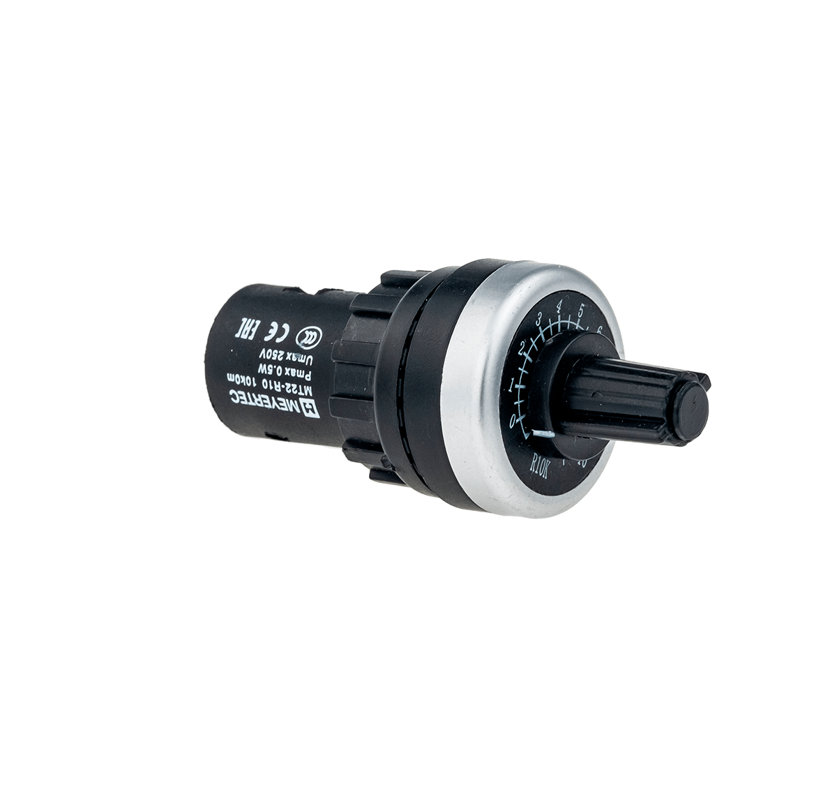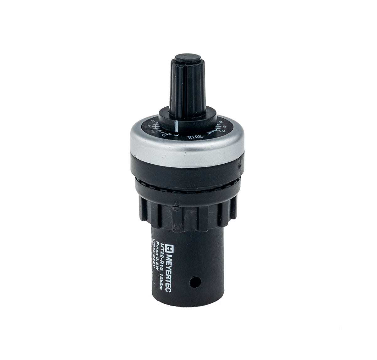 MT22-R10 Потенциометр, однооборотный, линейный. 10 кОм, 0,5 Вт, монтаж в стандартное отверстие 22 мм, пластик, t раб. -25...70 C, IP65