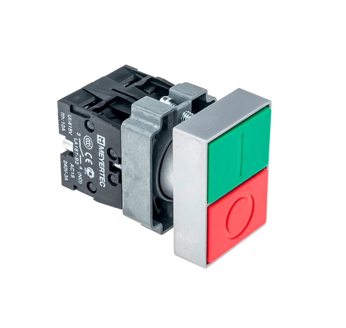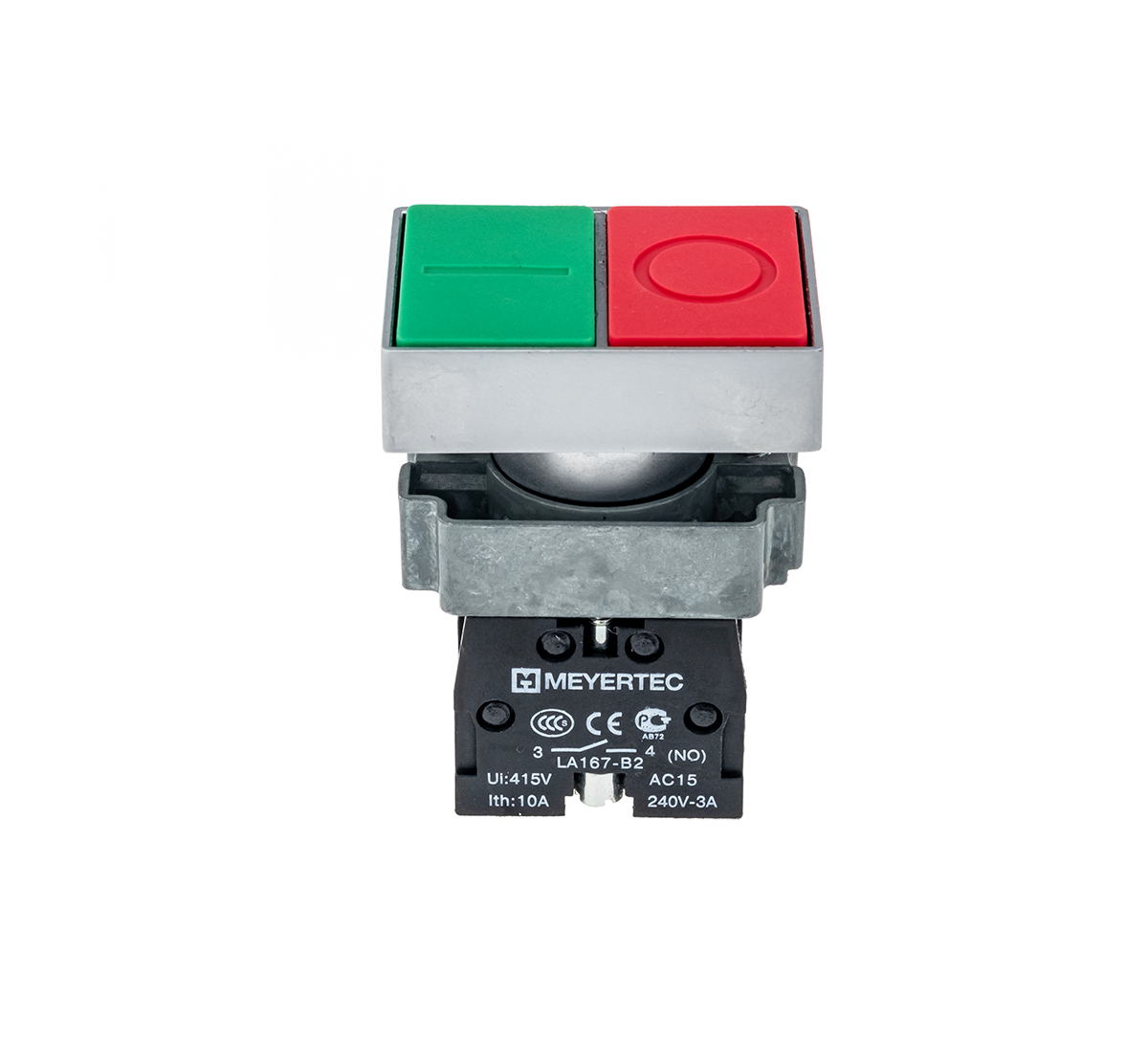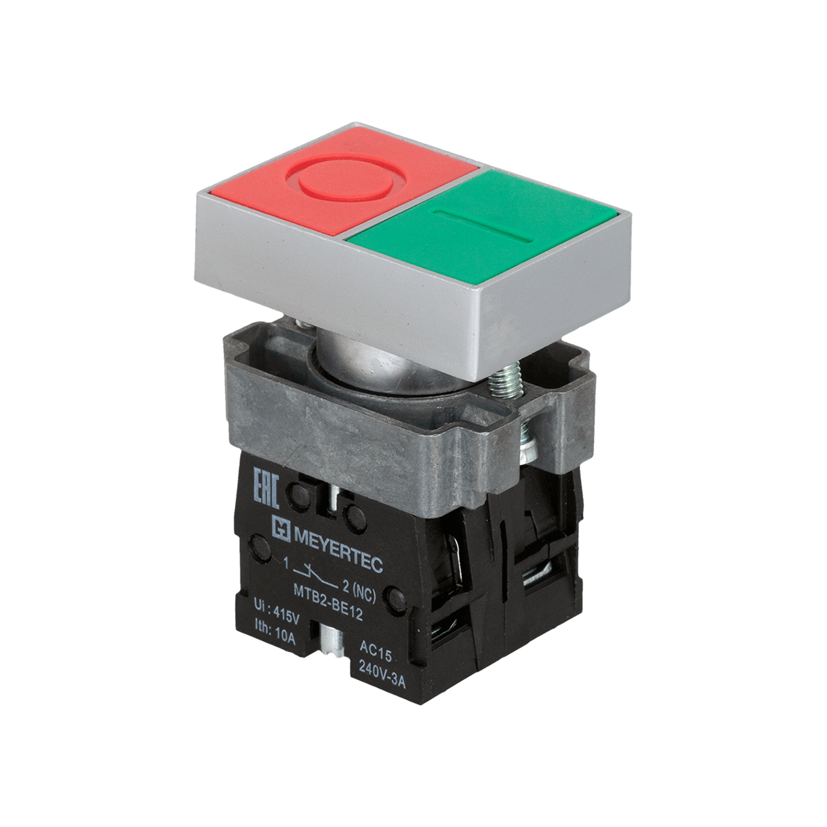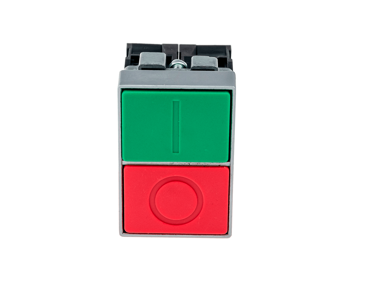 MTB2-BLZ1583 Кнопка двойная, красный/зеленый, 1NO+1NC, плоский толкатель, мет.