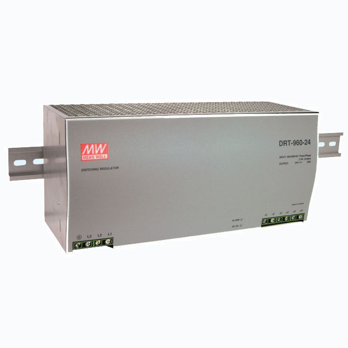 DRT-960-24 Мощный 3-х фазный БП на DIN-рейку , Вход: 3х фазное 340-550В, Выход 24B, 40A, 960Вт, MEAN WELL