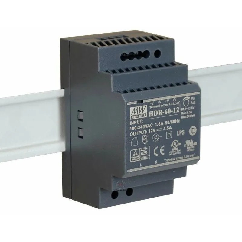 HDR-60-12, Источник питания Mean Well, 12В,5А,60Вт, диапазон регулировки напряжения 10.8 ~ 13,8VDC