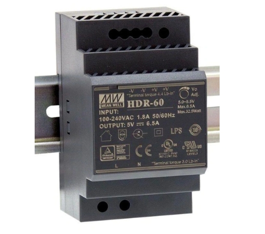 HDR-60-24, Источник питания Mean Well, 24В,2.5А,60Вт, диапазон регулировки напряжения 21.6 ~ 29VDC