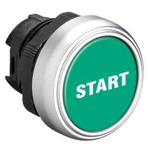 LPC B1163 Толкатель кнопки в металлическом корпусе, утапливаемый, без фиксации, (без крепежного основания ..AU120), цвет зеленый, с символом "START"