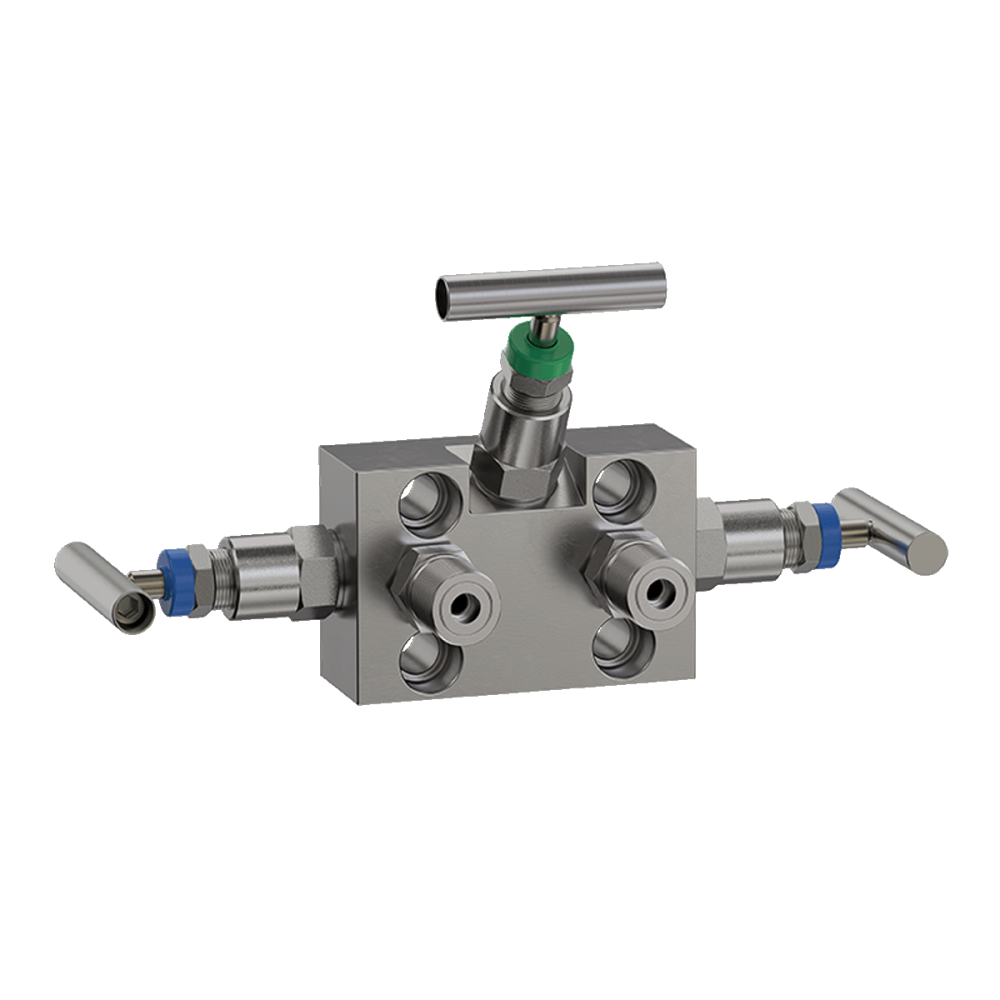 - БВ-310.40 Трёхвентильный блок с внешней присоединительной резьбой к процессу М20х1,5 и фланцевым монтажом на преобразователь с межосевым расстоянием 54 мм, без дренажа. Давление рабочей среды до 40МПа