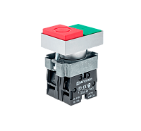 - MTB2-BW8363 Кнопка двойная с LED подсветкой, 220V AC/DC, красный/зеленый,1NO+1NC, плоский толкатель, металл